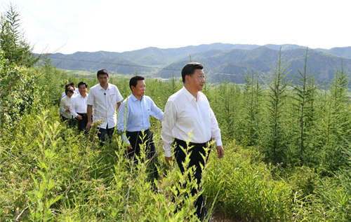 7月15日至16日,中共中央總書記、國家主席、中央軍委主席習(xí)近平在內(nèi)蒙古考察并指導(dǎo)開展“不忘初心、牢記使命”主題教育。這是15日下午,習(xí)近平在赤峰市喀喇沁旗馬鞍山林場林區(qū),沿著崎嶇的護(hù)林小道察看林木長勢(shì)。新華社記者 謝環(huán)馳 攝