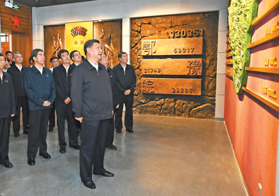 ——9月16日,在信陽市新縣鄂豫皖蘇區(qū)首府烈士陵園瞻仰革命烈士紀念堂時的講話