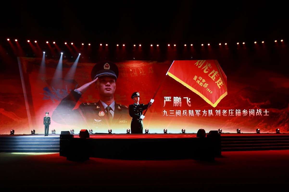 “哪怕只剩一個人,也要守住陣地!人在,陣地在!”這句回蕩在舞臺上的震耳壯語,正是“劉老莊連”戰(zhàn)士用生命刻下的錚錚誓言。那面彈痕累累的“劉老莊連”戰(zhàn)旗,始終在烽火硝煙中傲然挺立,如一把不屈的利劍,牢牢指向敵人的方向。