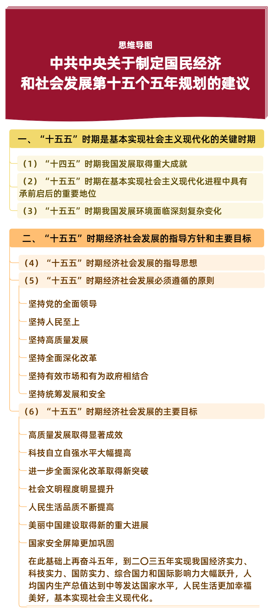 第一板塊包括第一、第二2個部分,為總論,主要闡述“十四五”時期我國發(fā)展取得重大成就、“十五五”時期在基本實現(xiàn)社會主義現(xiàn)代化進(jìn)程中具有承前啟后的重要地位、“十五五”時期我國發(fā)展環(huán)境面臨深刻復(fù)雜變化、“十五五”時期經(jīng)濟(jì)社會發(fā)展的指導(dǎo)思想、遵循的原則和主要目標(biāo)等內(nèi)容。