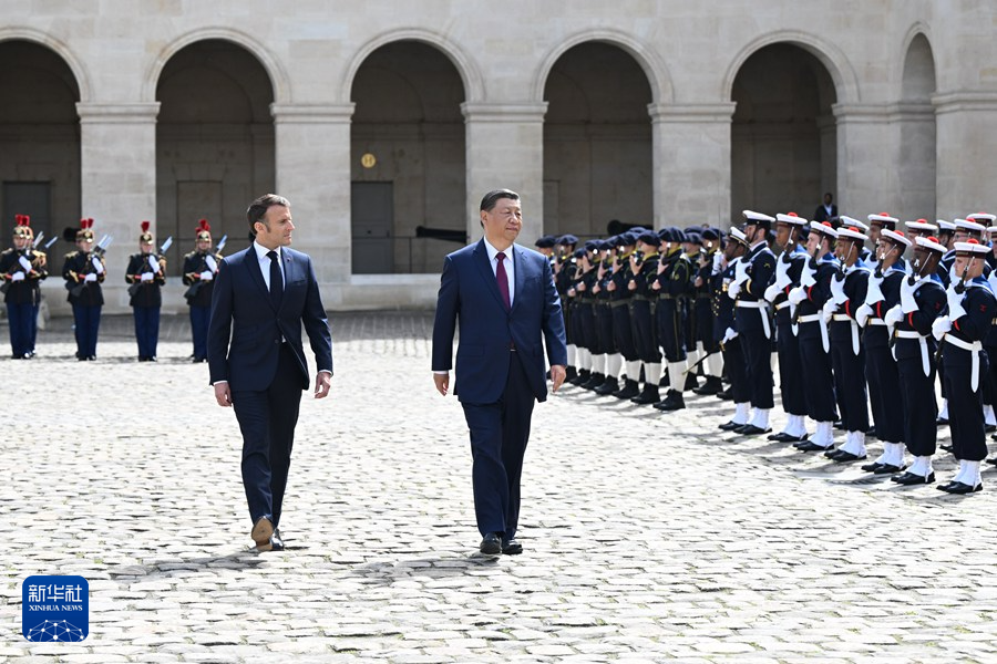 習(xí)近平出席法國(guó)總統(tǒng)馬克龍舉行的歡迎儀式