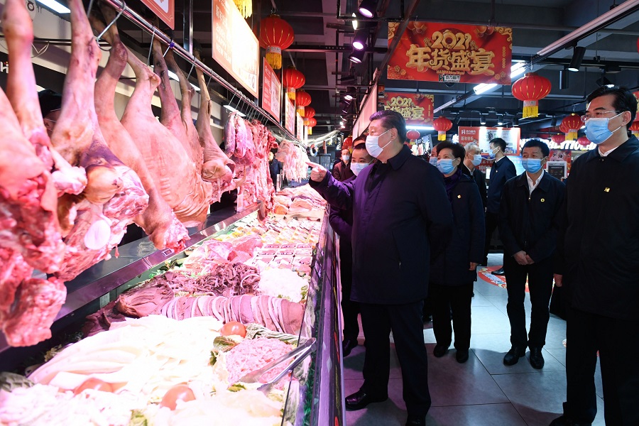 2月3日至5日,中共中央總書記、國(guó)家主席、中央軍委主席習(xí)近平來(lái)到貴州考察調(diào)研,看望慰問(wèn)各族干部群眾,向全國(guó)各族人民致以美好的新春祝福。這是4日下午,習(xí)近平在貴陽(yáng)市觀山湖區(qū)合力惠民生鮮超市,察看春節(jié)前市場(chǎng)供應(yīng)、年貨供銷、物價(jià)運(yùn)行等情況。新華社記者 謝環(huán)馳 攝