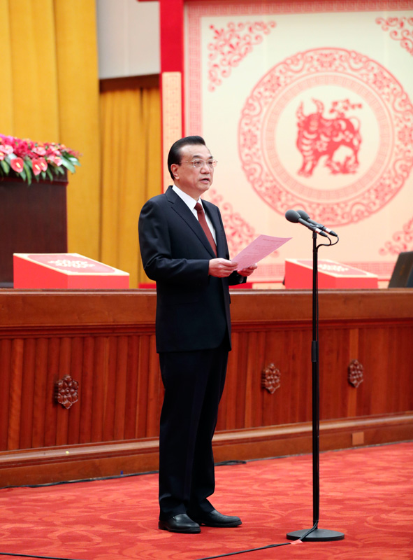 2月10日,中共中央、國務(wù)院在北京人民大會堂舉行2021年春節(jié)團(tuán)拜會。中共中央政治局常委、國務(wù)院總理李克強(qiáng)主持團(tuán)拜會。新華社記者 劉衛(wèi)兵 攝