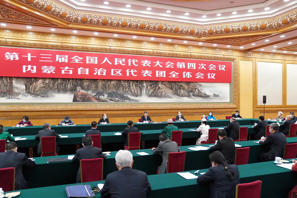 3月5日,中共中央總書記、國家主席、中央軍委主席習近平參加十三屆全國人大四次會議內蒙古代表團的審議。新華社記者 鞠鵬 攝
