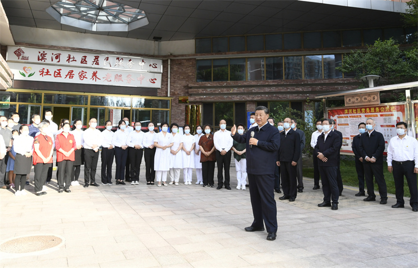 8月23日至24日,中共中央總書記、國家主席、中央軍委主席習(xí)近平在河北省承德市考察。這是24日下午,習(xí)近平在承德市高新區(qū)濱河社區(qū)考察時(shí),同社區(qū)居民親切交流。新華社記者 李學(xué)仁 攝