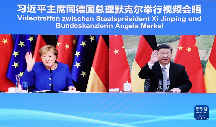 10月13日,國家主席習(xí)近平在北京同德國總理默克爾舉行視頻會晤。新華社記者 劉彬 攝