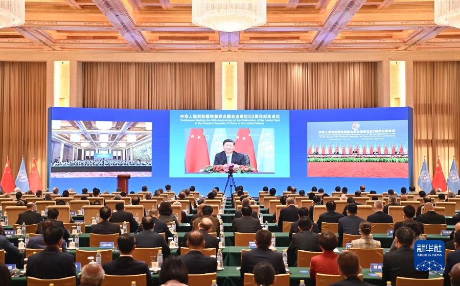 10月25日,國家主席習近平在北京出席中華人民共和國恢復(fù)聯(lián)合國合法席位50周年紀念會議並發(fā)表重要講話。