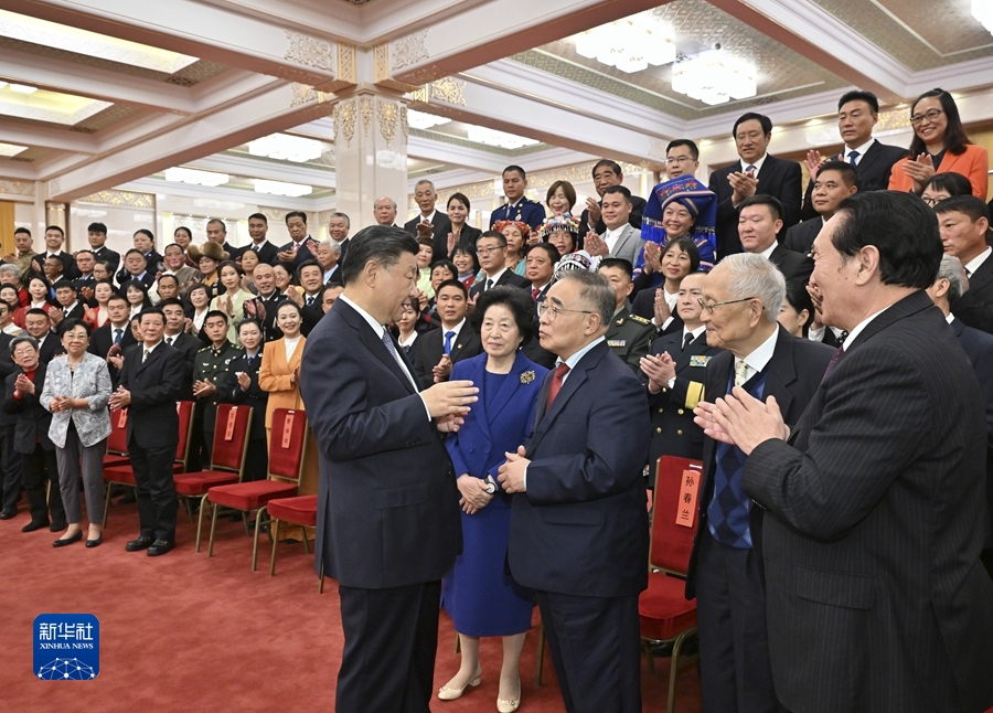 11月5日,黨和國(guó)家領(lǐng)導(dǎo)人習(xí)近平、王滬寧等在北京人民大會(huì)堂會(huì)見(jiàn)第八屆全國(guó)道德模范及提名獎(jiǎng)獲得者。這是習(xí)近平同全國(guó)敬業(yè)奉獻(xiàn)模范張伯禮等親切交流。新華社記者 李學(xué)仁 攝