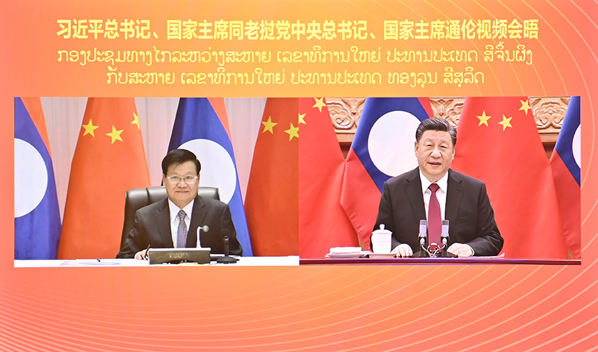 12月3日,中共中央總書記、國家主席習(xí)近平在北京同老撾人民革命黨中央總書記、國家主席通倫舉行視頻會晤。