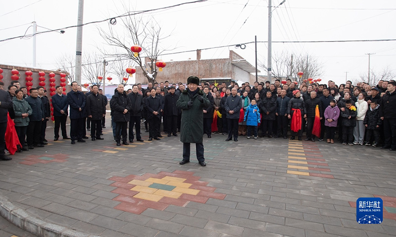 1月26日至27日,中共中央總書記、國家主席、中央軍委主席習近平來到山西,看望慰問基層干部群眾。這是26日下午,習近平在臨汾市汾西縣僧念鎮(zhèn)段村文化廣場,給鄉(xiāng)親們拜年,向全國各族人民、向港澳臺同胞和海外僑胞致以美好的新春祝福。新華社記者 謝環(huán)馳 攝