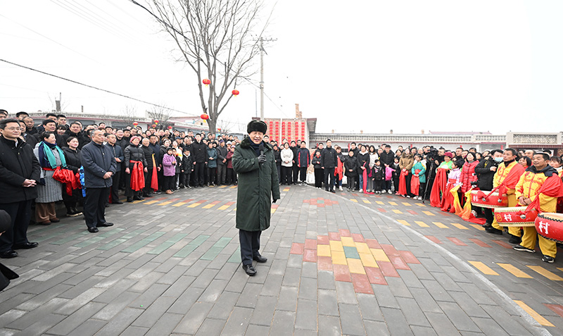 1月26日至27日,中共中央總書記、國(guó)家主席、中央軍委主席習(xí)近平來(lái)到山西,看望慰問(wèn)基層干部群眾。這是26日下午,習(xí)近平在臨汾市汾西縣僧念鎮(zhèn)段村文化廣場(chǎng),給鄉(xiāng)親們拜年,向全國(guó)各族人民、向港澳臺(tái)同胞和海外僑胞致以美好的新春祝福。新華社記者 李學(xué)仁 攝