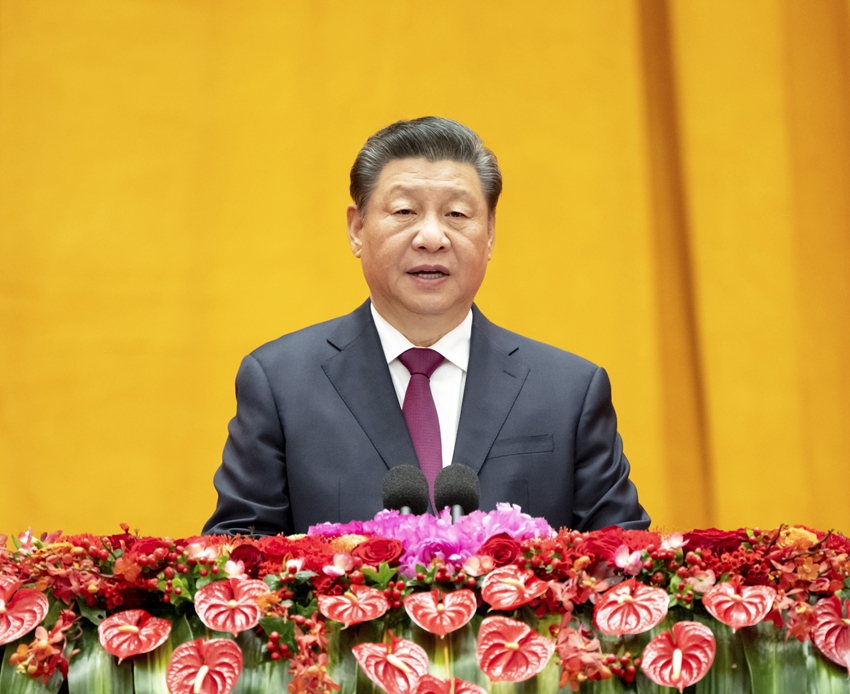 1月30日,中共中央、國務院在北京人民大會堂舉行2022年春節(jié)團拜會。中共中央總書記、國家主席、中央軍委主席習近平發(fā)表講話。新華社記者 李濤 攝