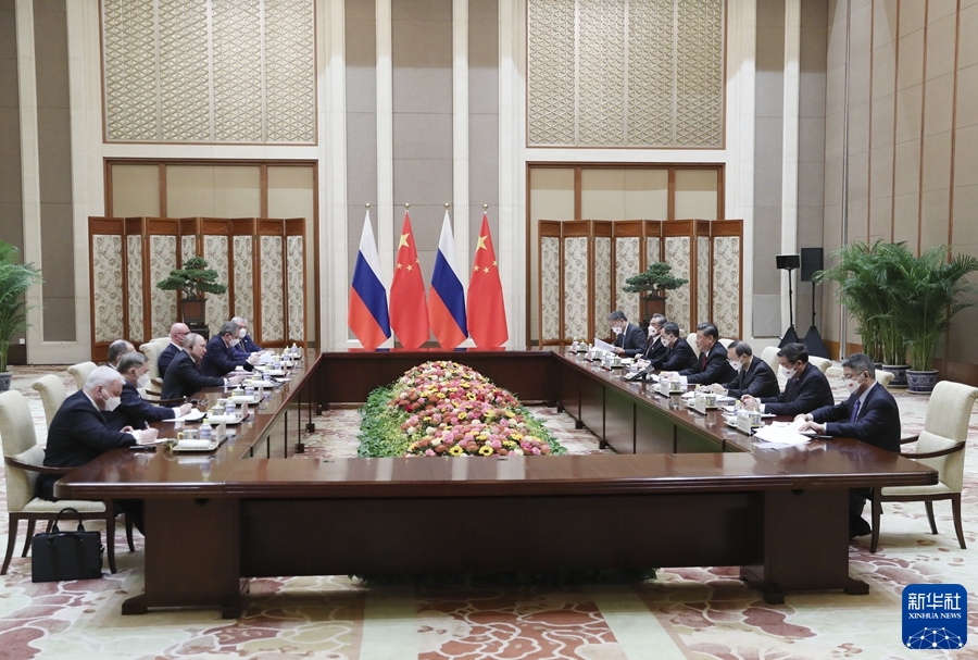 2月4日下午,國家主席習(xí)近平在北京釣魚臺國賓館同俄羅斯總統(tǒng)普京舉行會談。新華社記者 丁海濤 攝