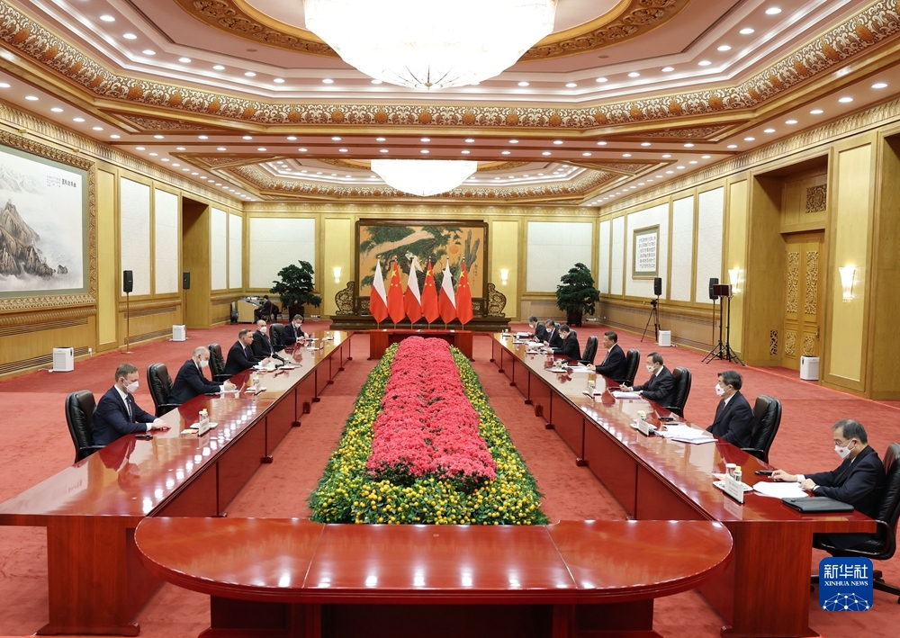 2月6日上午,國家主席習(xí)近平在北京人民大會堂會見來華出席北京2022年冬奧會開幕式的波蘭總統(tǒng)杜達。新華社記者丁林攝