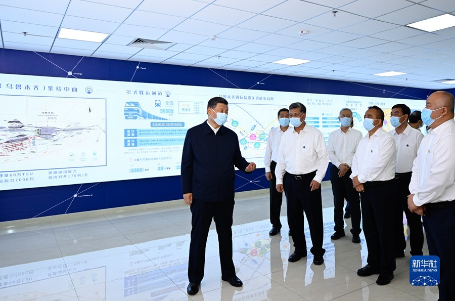 7月12日至15日,中共中央總書記、國家主席、中央軍委主席習近平在新疆考察。這是12日下午,習近平在烏魯木齊國際陸港區(qū)考察。