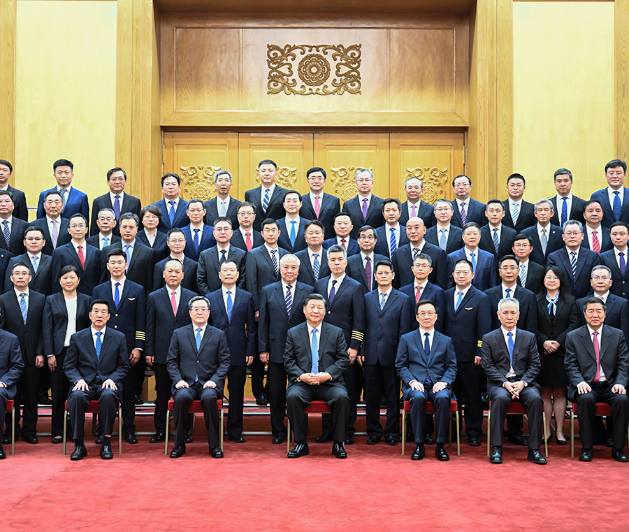 9月30日,黨和國家領(lǐng)導(dǎo)人習(xí)近平、韓正等在北京人民大會(huì)堂會(huì)見C919大型客機(jī)項(xiàng)目團(tuán)隊(duì)代表並參觀項(xiàng)目成果展覽。這是習(xí)近平等會(huì)見C919大型客機(jī)項(xiàng)目團(tuán)隊(duì)代表。
