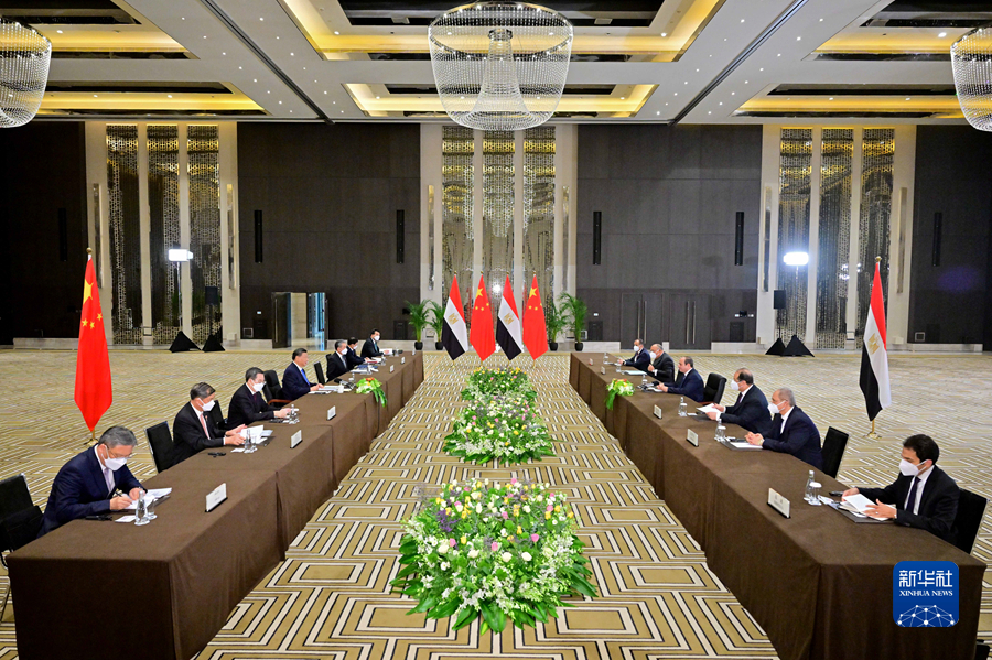 當(dāng)?shù)貢r間12月8日下午,國家主席習(xí)近平在利雅得會見埃及總統(tǒng)塞西。新華社記者 岳月偉 攝