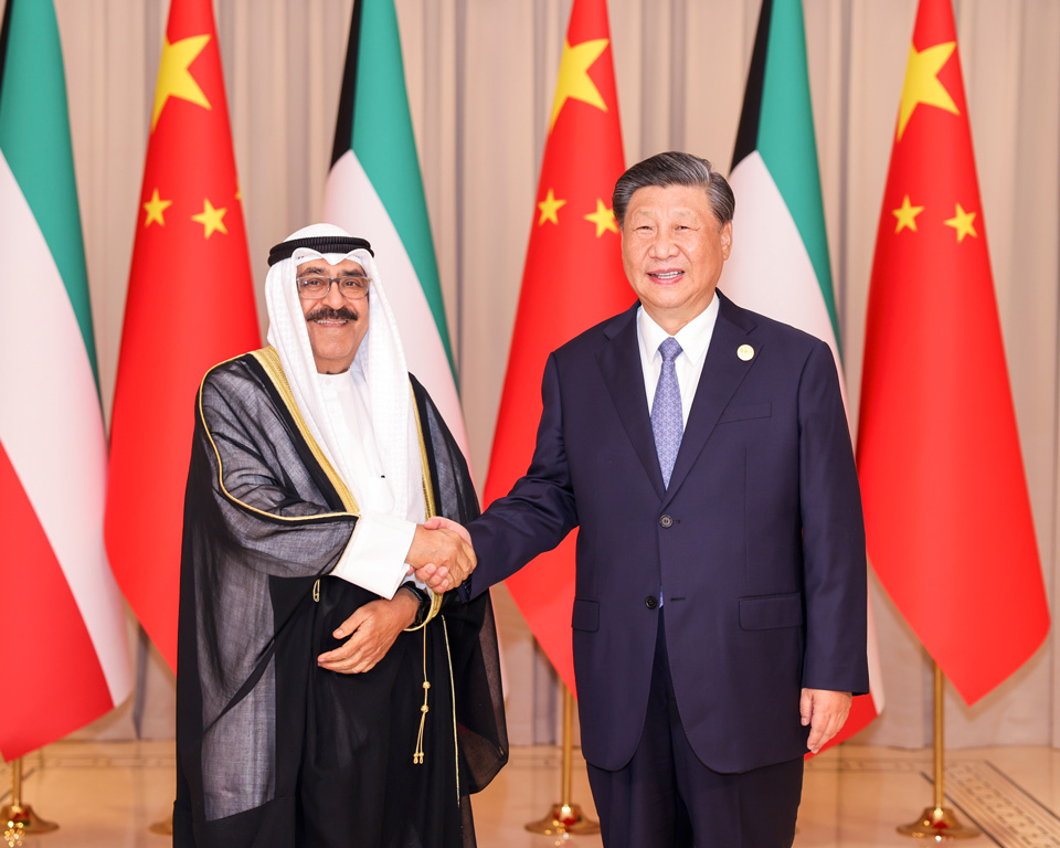 9月22日下午,國家主席習(xí)近平在杭州西湖國賓館會見來華出席第19屆亞洲運(yùn)動會開幕式的科威特王儲米沙勒。