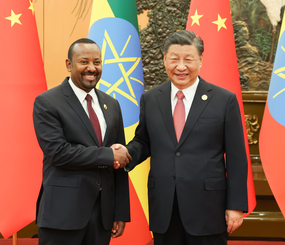 10月17日上午,國家主席習近平在北京人民大會堂會見來華出席第三屆“一帶一路”國際合作高峰論壇並進行正式訪問的埃塞俄比亞總理阿比。