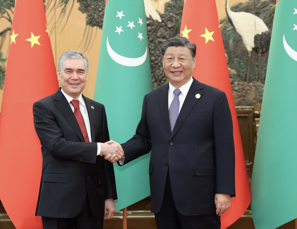 10月19日上午,國家主席習(xí)近平在北京人民大會堂會見來華出席第三屆“一帶一路”國際合作高峰論壇的土庫曼斯坦民族領(lǐng)袖、人民委員會主席別爾德穆哈梅多夫。