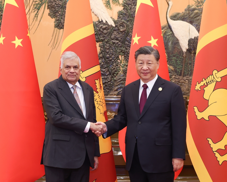 10月20日上午,國(guó)家主席習(xí)近平在北京人民大會(huì)堂會(huì)見來(lái)華出席第三屆“一帶一路”國(guó)際合作高峰論壇的斯裡蘭卡總統(tǒng)維克拉馬辛哈。