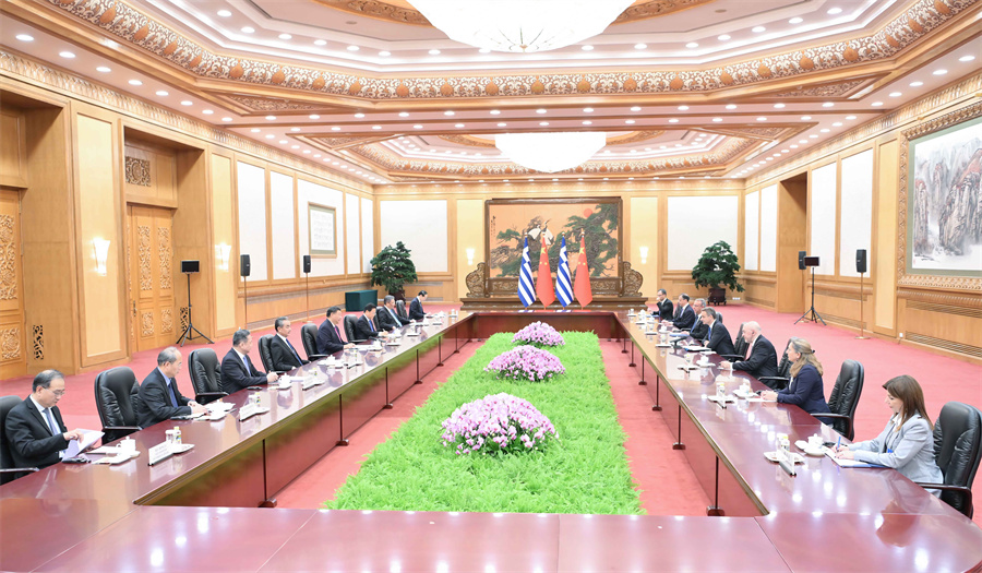 11月3日下午,國家主席習近平在北京人民大會堂會見來華進行正式訪問的希臘總理米佐塔基斯。新華社記者 李濤 攝