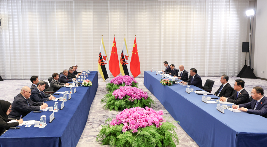 當地時間11月16日下午,國家主席習近平在舊金山會見文萊蘇丹哈桑納爾。