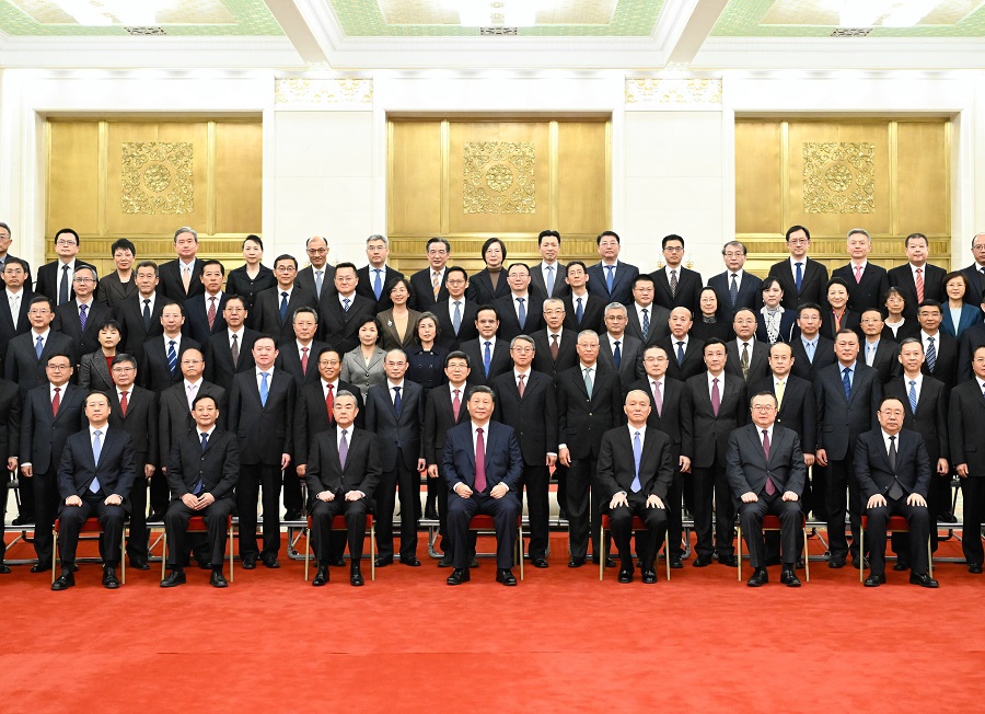 12月29日,黨和國家領(lǐng)導(dǎo)人習(xí)近平、蔡奇等在北京人民大會(huì)堂接見參加2023年度駐外使節(jié)工作會(huì)議的全體使節(jié)。