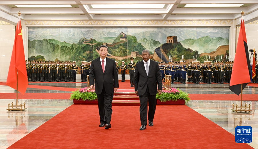 3月15日下午,國家主席習(xí)近平在北京人民大會堂同來華進行國事訪問的安哥拉總統(tǒng)洛倫索舉行會談。這是會談前,習(xí)近平在人民大會堂北大廳為洛倫索舉行歡迎儀式。新華社記者 李學(xué)仁 攝