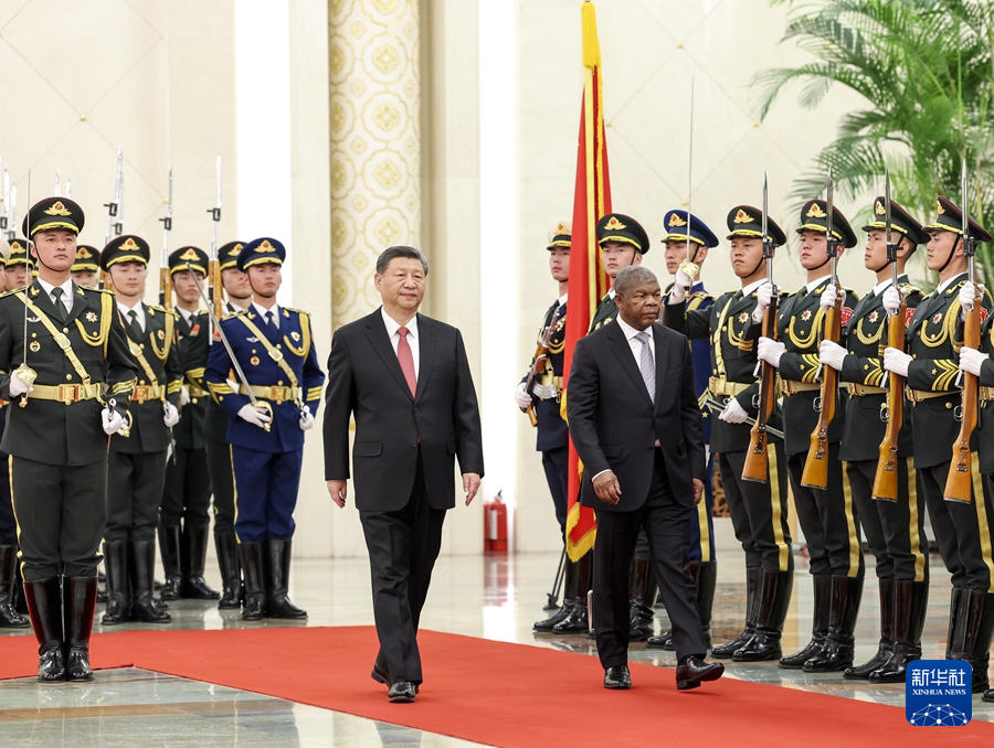 3月15日下午,國家主席習近平在北京人民大會堂同來華進行國事訪問的安哥拉總統(tǒng)洛倫索舉行會談。這是會談前,習近平在人民大會堂北大廳為洛倫索舉行歡迎儀式。新華社記者 丁林 攝