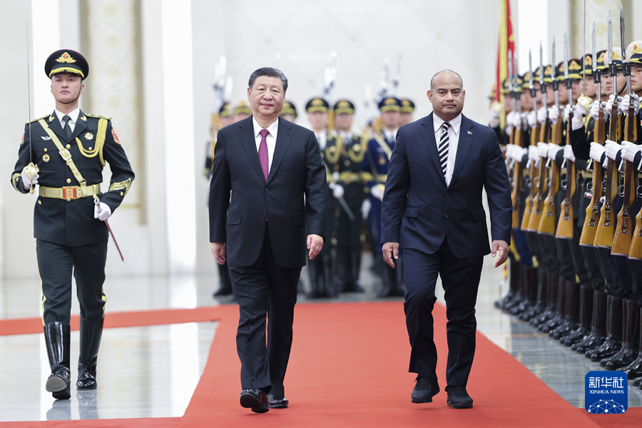 3月25日下午,國(guó)家主席習(xí)近平在北京人民大會(huì)堂同來(lái)華進(jìn)行國(guó)事訪問(wèn)的瑙魯總統(tǒng)阿迪昂舉行會(huì)談。這是會(huì)談前,習(xí)近平在人民大會(huì)堂北大廳為阿迪昂舉行歡迎儀式。