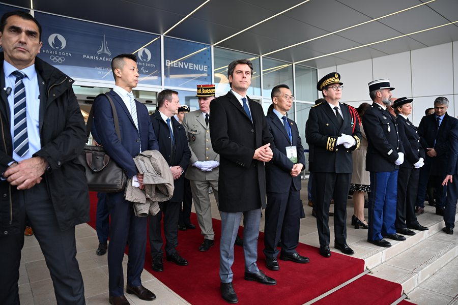 習(xí)近平乘坐專(zhuān)機(jī)抵達(dá)巴黎奧利機(jī)場(chǎng)時(shí),法國(guó)總理阿塔爾等法國(guó)政府高級(jí)代表熱情迎接。
