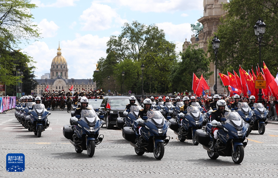 當(dāng)?shù)貢r(shí)間5月6日下午,正在法國(guó)進(jìn)行國(guó)事訪問(wèn)的國(guó)家主席習(xí)近平在巴黎出席法國(guó)總統(tǒng)馬克龍舉行的隆重盛大歡迎儀式。這是歡迎儀式后,習(xí)近平和夫人彭麗媛在共和國(guó)衛(wèi)隊(duì)148名騎兵組成的禮兵馬隊(duì)和摩托車隊(duì)護(hù)衛(wèi)下,乘車前往愛(ài)麗舍宮。