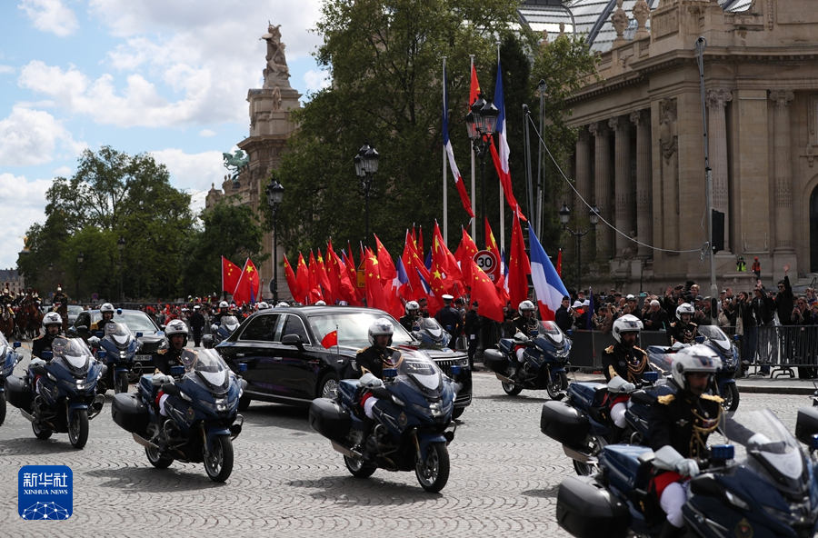 當(dāng)?shù)貢r間5月6日下午,正在法國進(jìn)行國事訪問的國家主席習(xí)近平在巴黎出席法國總統(tǒng)馬克龍舉行的隆重盛大歡迎儀式。這是歡迎儀式后,習(xí)近平和夫人彭麗媛在共和國衛(wèi)隊148名騎兵組成的禮兵馬隊和摩托車隊護(hù)衛(wèi)下,乘車前往愛麗舍宮。