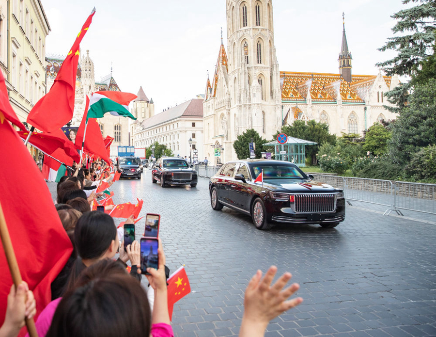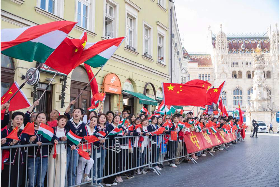 赴機場途中,旅匈華人華僑和留學生聚集在道路兩旁,揮舞中匈兩國國旗,舉著寫有“中匈友誼萬歲”等橫幅,熱烈歡送習近平主席,祝賀訪問取得圓滿成功。