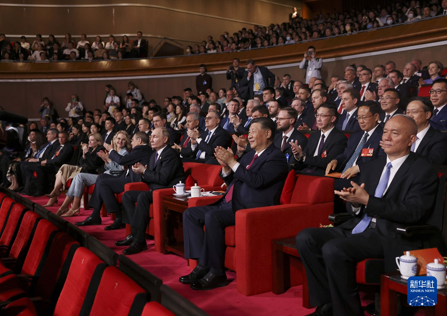 5月16日下午,國(guó)家主席習(xí)近平和俄羅斯總統(tǒng)普京在北京國(guó)家大劇院共同出席“中俄文化年”開(kāi)幕式暨慶祝中俄建交75周年專場(chǎng)音樂(lè)會(huì)並致辭。這是兩國(guó)元首共同欣賞由中俄兩國(guó)藝術(shù)家聯(lián)袂呈現(xiàn)的精彩文藝演出。