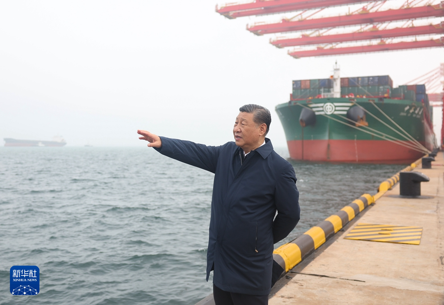 5月22日至24日,中共中央總書記、國家主席、中央軍委主席習(xí)近平在山東考察。這是22日下午,習(xí)近平在日照港考察。