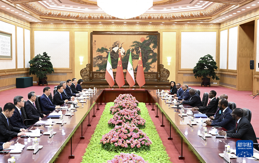 5月28日下午,國家主席習(xí)近平在北京人民大會堂同來華進行國事訪問的赤道幾內(nèi)亞總統(tǒng)奧比昂舉行會談。