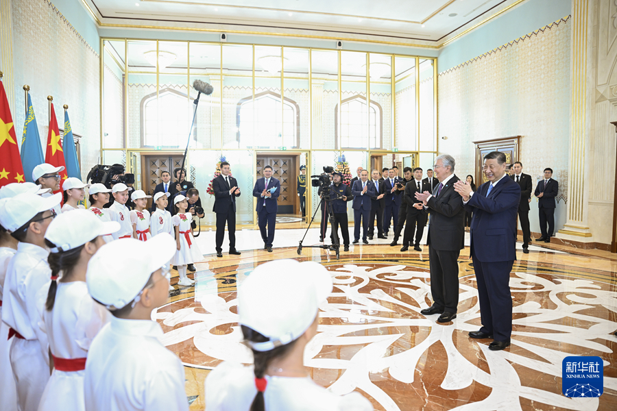 當?shù)貢r間7月2日中午,國家主席習近平乘專機抵達阿斯塔納,出席上海合作組織成員國元首理事會第二十四次會議,應哈薩克斯坦共和國總統(tǒng)托卡耶夫邀請,對哈薩克斯坦進行國事訪問。托卡耶夫在機場為習近平舉行盛大隆重的迎賓儀式,十余名哈薩克斯坦少年兒童用中文演唱《歌唱祖國》。