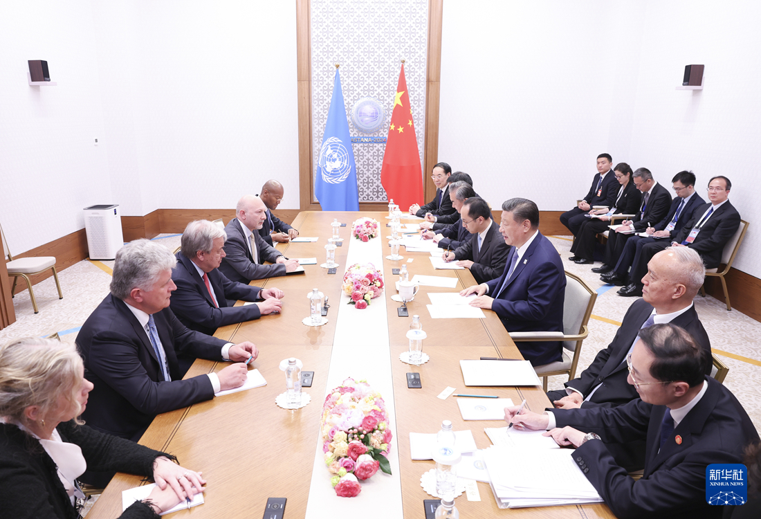 當(dāng)?shù)貢r間7月4日下午,國家主席習(xí)近平在阿斯塔納出席上海合作組織峰會期間會見聯(lián)合國秘書長古特雷斯。