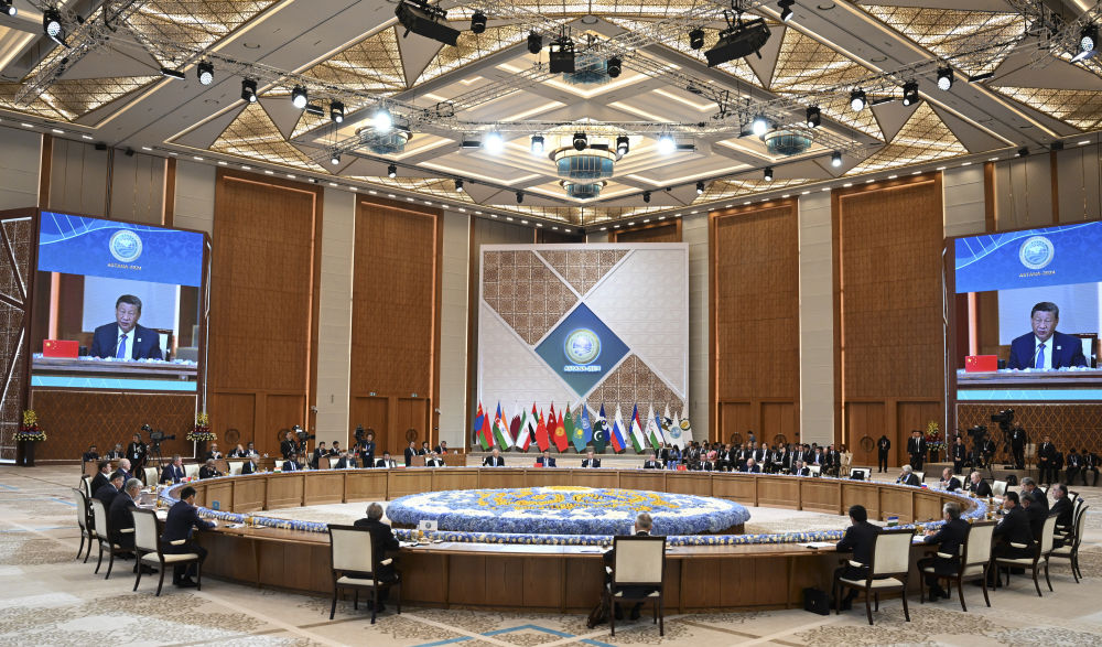 當(dāng)?shù)貢r間7月4日上午,國家主席習(xí)近平在阿斯塔納獨(dú)立宮出席上海合作組織成員國元首理事會第二十四次會議。