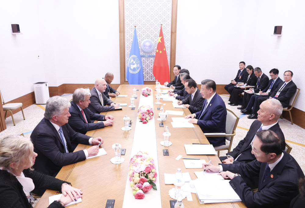 3日和4日,習(xí)近平主席還在峰會前夕和期間分別會見烏茲別克斯坦總統(tǒng)米爾濟(jì)約耶夫、阿塞拜疆總統(tǒng)阿利耶夫、吉爾吉斯斯坦總統(tǒng)扎帕羅夫、俄羅斯總統(tǒng)普京、土耳其總統(tǒng)埃爾多安、聯(lián)合國秘書長古特雷斯和白俄羅斯總統(tǒng)盧卡申科。
