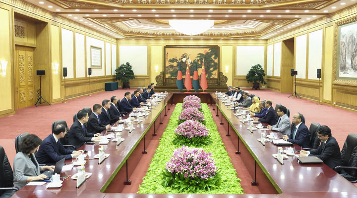 7月10日下午,國家主席習(xí)近平在北京人民大會(huì)堂會(huì)見來華進(jìn)行正式訪問的孟加拉國總理哈西娜。