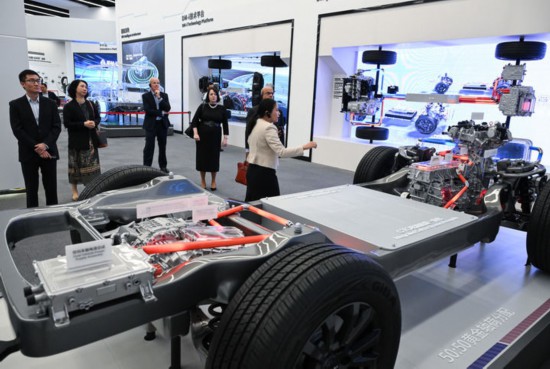 外賓在位於深圳市坪山區(qū)的比亞迪全球總部展廳參觀(2024年7月22日攝)。新華社記者 李賀 攝