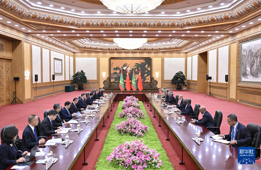 9月3日晚,國家主席習近平在北京人民大會堂會見來華出席中非合作論壇北京峰會的毛裡塔尼亞總統(tǒng)加茲瓦尼。
