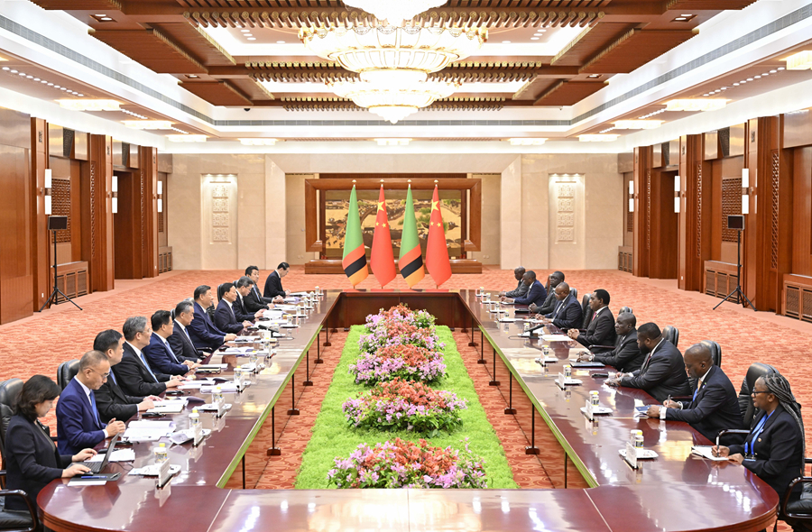 9月4日上午,國(guó)家主席習(xí)近平在北京人民大會(huì)堂會(huì)見來(lái)華出席中非合作論壇北京峰會(huì)的贊比亞總統(tǒng)希奇萊馬。