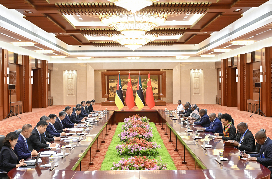 9月4日中午,國家主席習近平在北京人民大會堂會見來華出席中非合作論壇北京峰會的莫桑比克總統(tǒng)紐西。