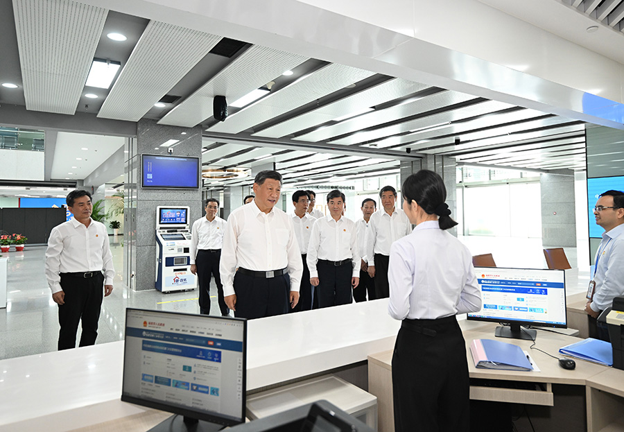 10月15日至16日,中共中央總書記、國(guó)家主席、中央軍委主席習(xí)近平在福建考察。這是16日上午,習(xí)近平在中國(guó)(福建)自由貿(mào)易試驗(yàn)區(qū)廈門片區(qū)考察時(shí),同綜合服務(wù)大廳窗口工作人員親切交流。