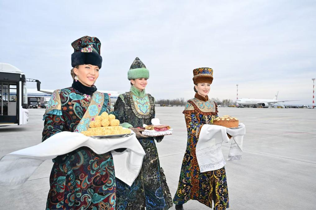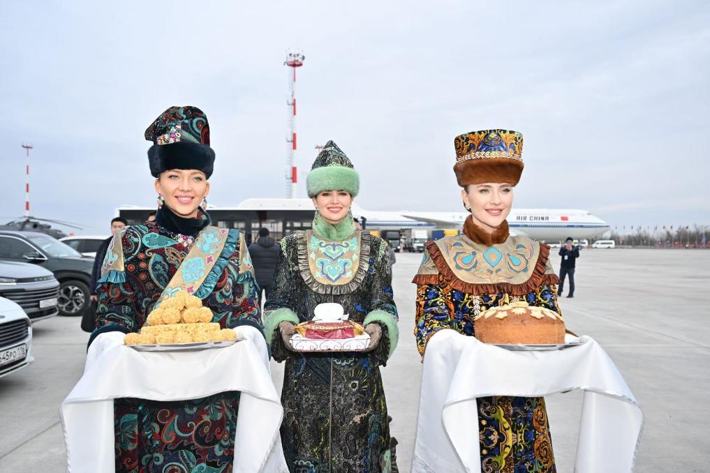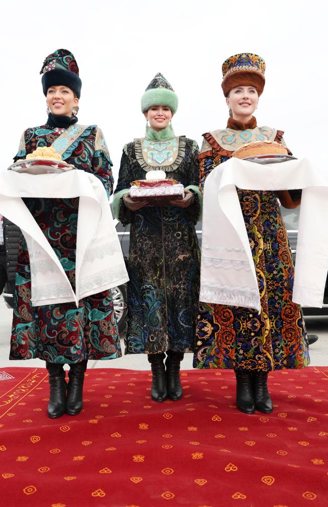專機(jī)抵達(dá)喀山國際機(jī)場時(shí),俄羅斯聯(lián)邦韃靼斯坦共和國行政長官明尼哈諾夫、共和國總理佩索申、喀山市市長梅特申和俄羅斯外交部高級(jí)官員在機(jī)場熱情迎接。
