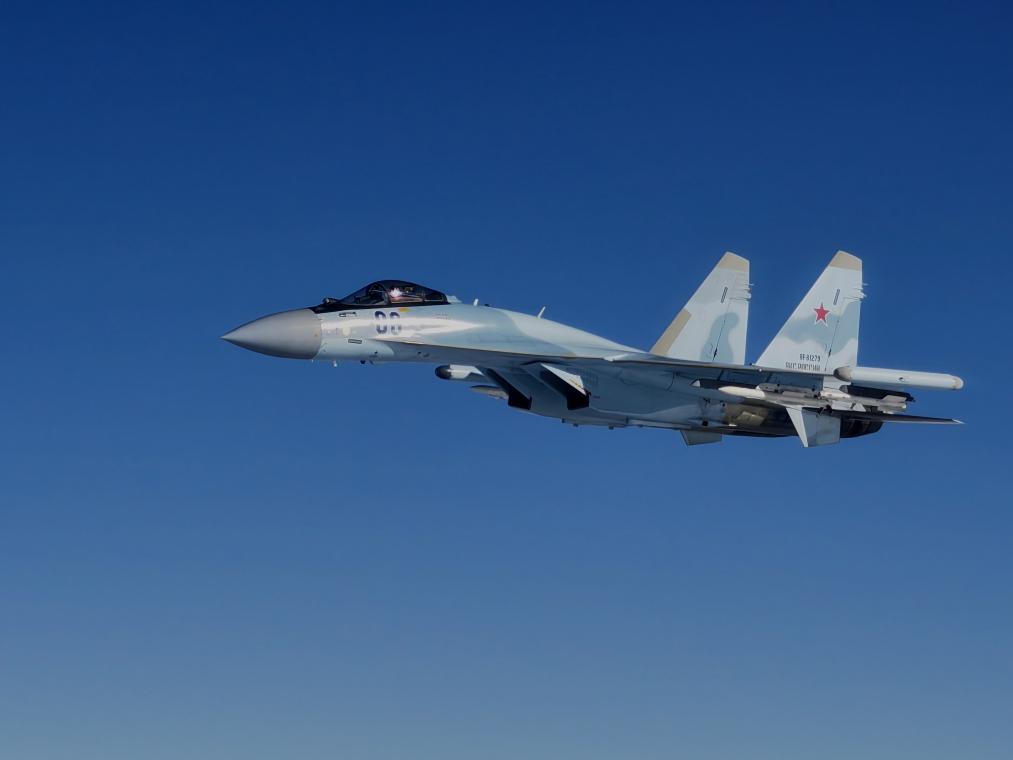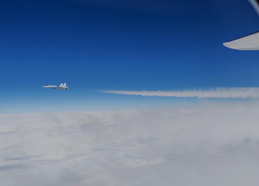專機(jī)抵達(dá)喀山國際機(jī)場前,俄戰(zhàn)機(jī)升空護(hù)航。